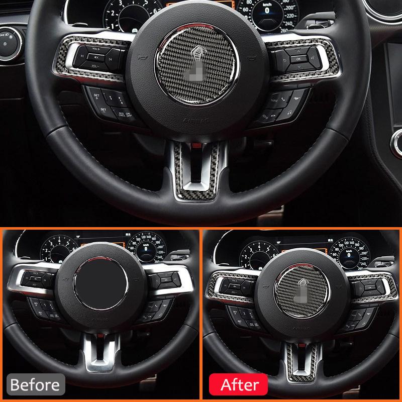 Carbon Fiber Car Steering Wheel Emblem Buttons Panel Kits Interior Decoration Sticker For Ford Mustang 2015- Accessories