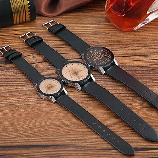 ZooooM Unique Gear Geometric Motif Design Watch with Quartz Movement and Faux Leather Band, Fashionable and Casual, Unisex (Women's Black)