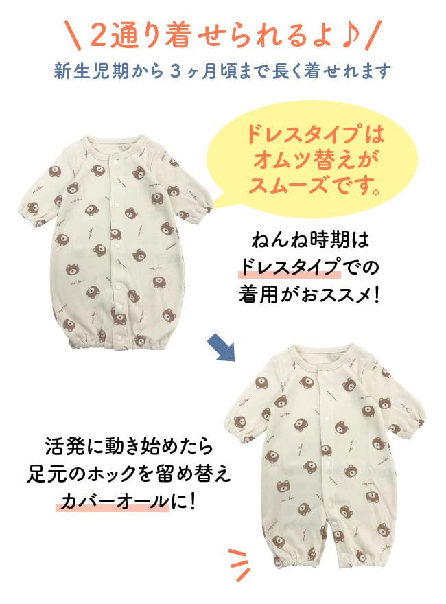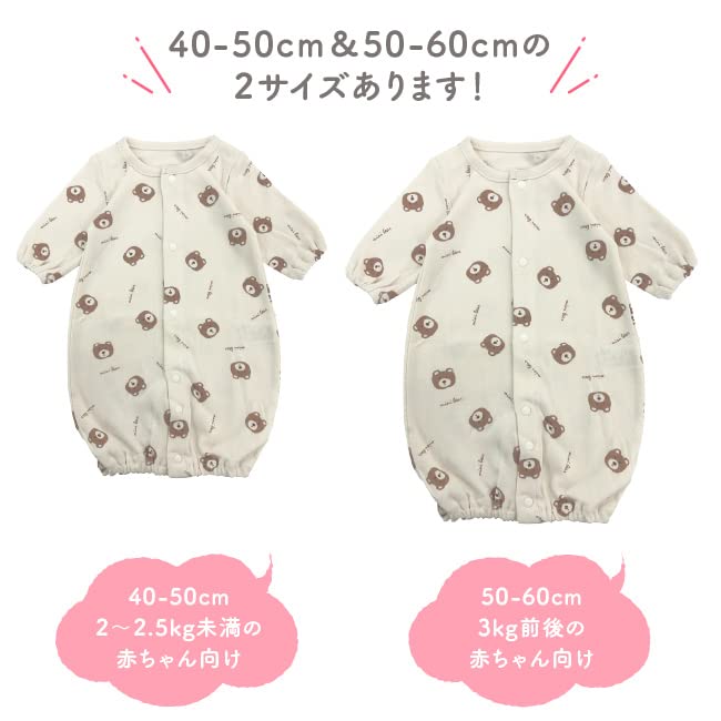 Chuckle Baby Baby Dress Bear for Boys and Sizes Clothes, Newborn, Two-Way All-in-One Coverall, Design, Girls, 40-50cm, 50-60cm, P5549E-50-50