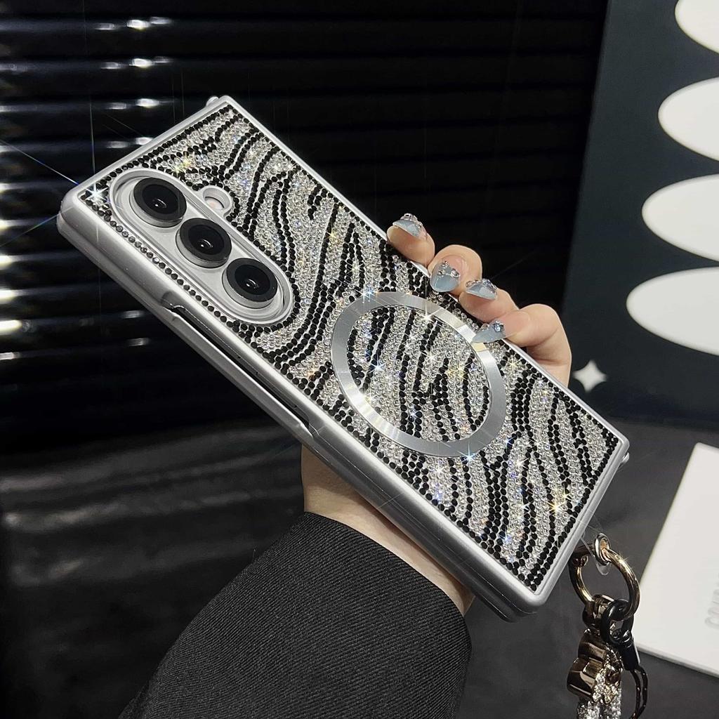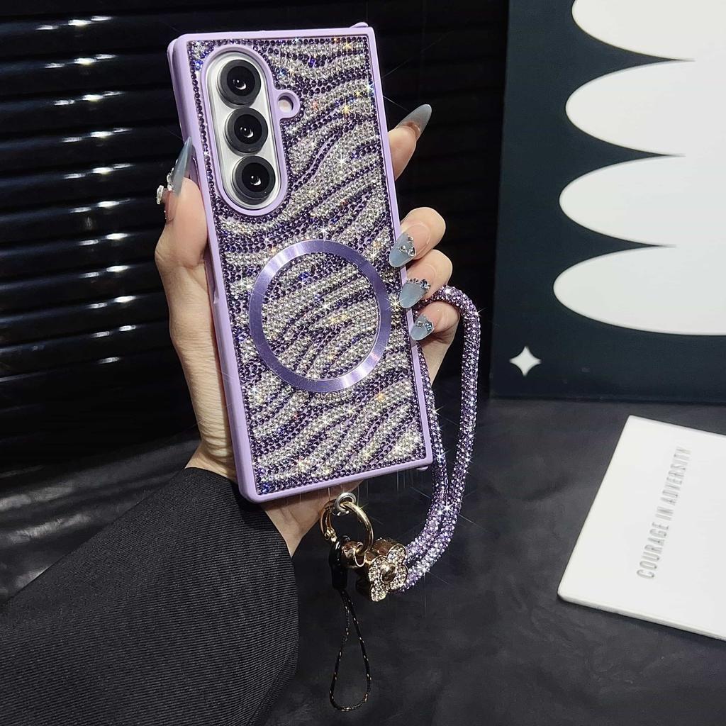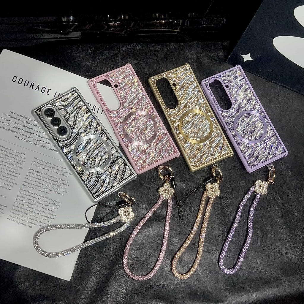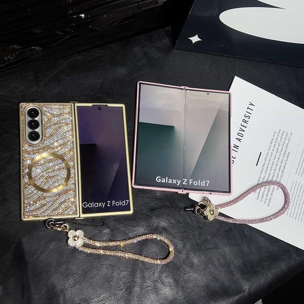 Чехол для Samsung Galaxy Z Fold7/ 6/ 5/ 4/ 3 с ремешком на запястье Magsafe и чехлом с кристальным декором, бамперы для телефона