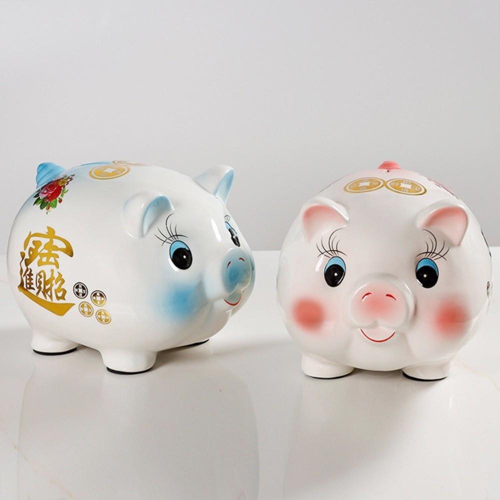 Ceramic Piggy Money Bank Good Luck Golden Beans Container Pig Coins Saving Box Home Decor