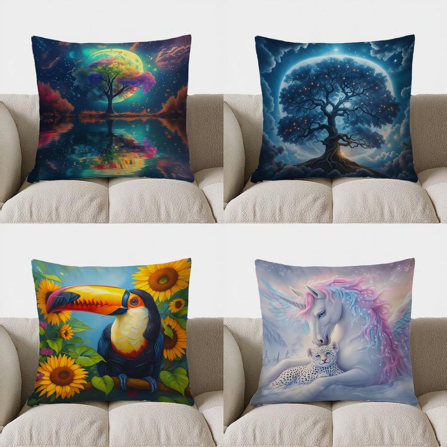 Домашний Декор Красочное Дерево и Луна Ночная Сцена Узор на Подушку Наволочка Подходит Для Дивана Спальни Автомобиля Наволочка