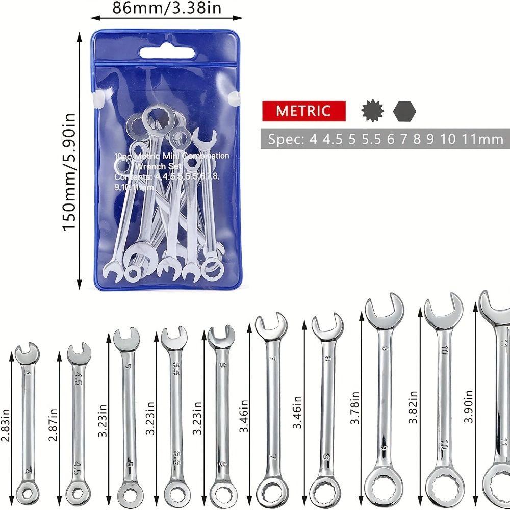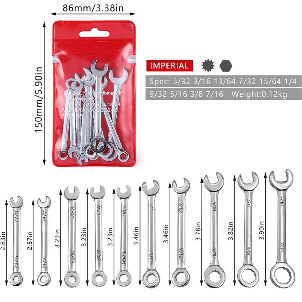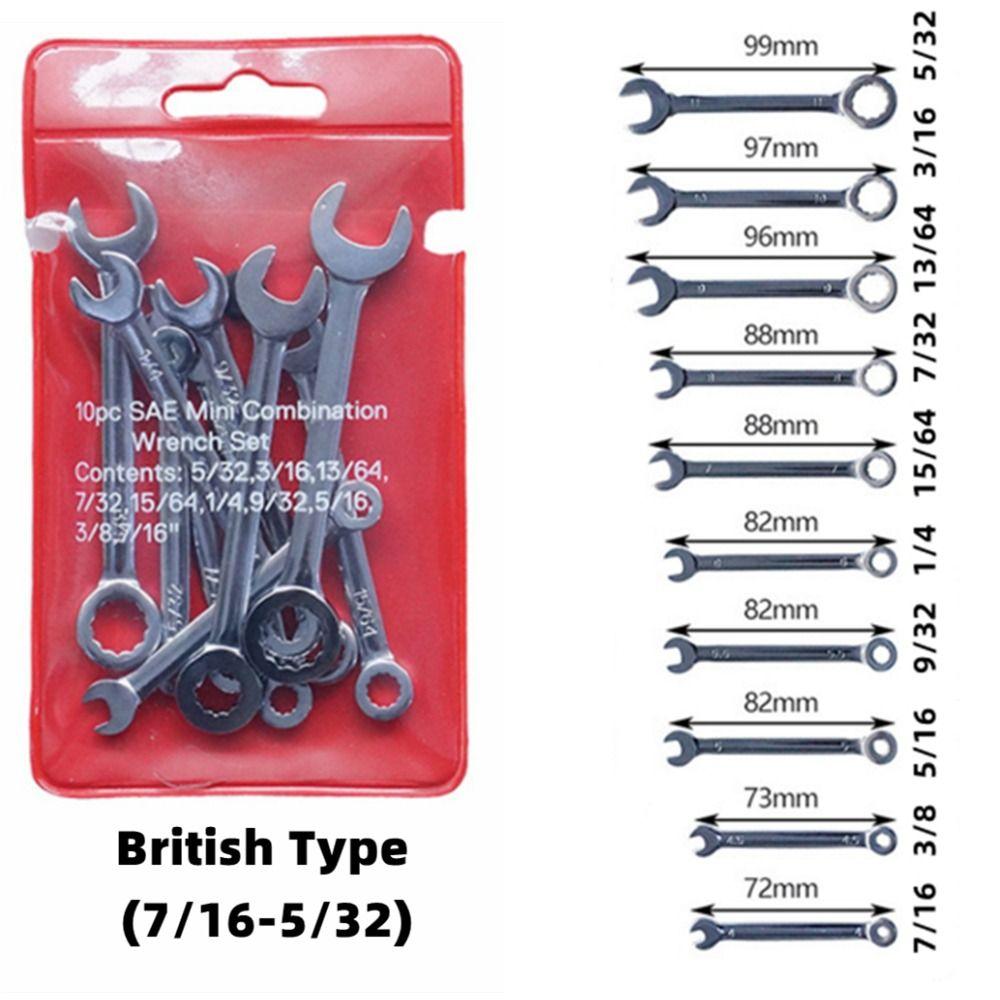 Набор из 10 взрывозащищенных мини-гаечных ключей британского/метрического типа для ослабления винтов/гаек
