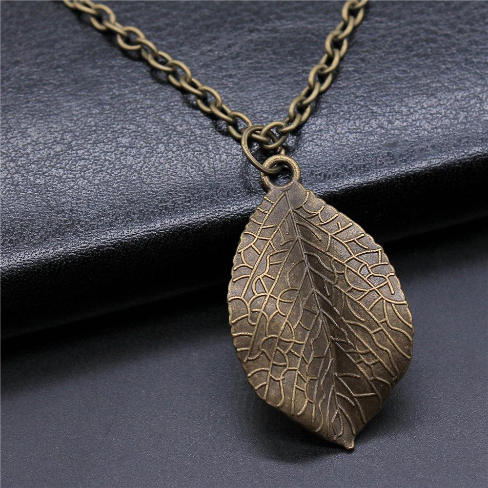 Винтажное бронзовое ожерелье с подвеской в виде листа 35x20 мм, длинная цепочка, модная бижутерия для женщин и мужчин, модные аксессуары