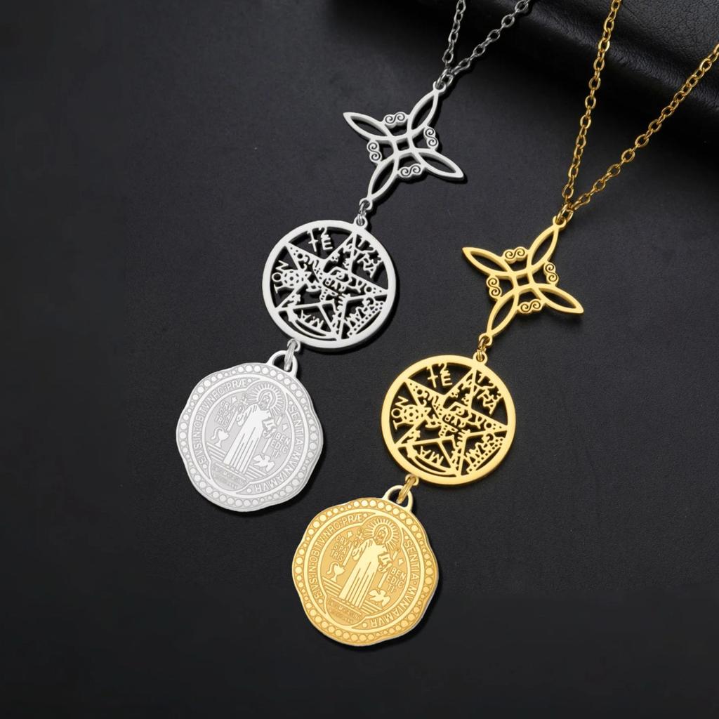 Колье с пентаграммой Святого Бенедикта из нержавеющей стали с изображением ведьминского узла, религиозное украшение с символом тетраграмматона для защиты. — купить товар онлайн с бесплатной доставкой по всему миру!