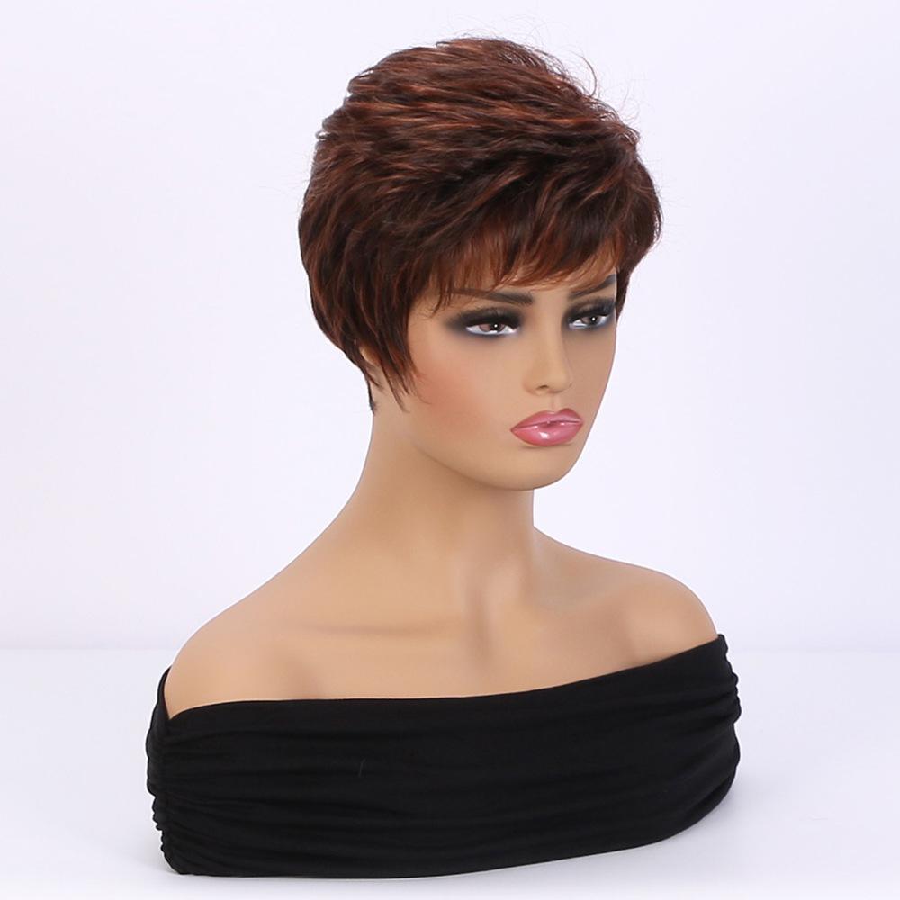 Женские короткие синтетические волнистые парики натуральные многослойные рыже-коричневые волосы с челкой для повседневной вечеринки костюма термостойкое волокно