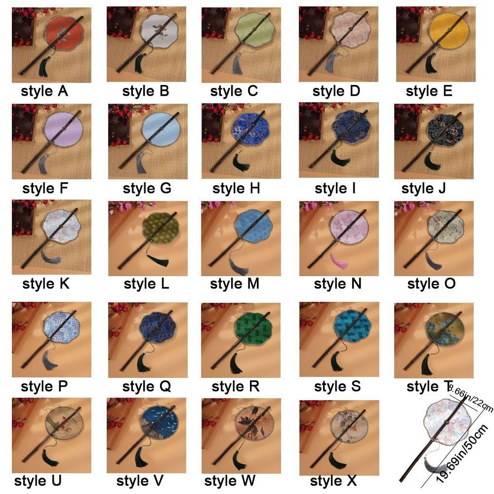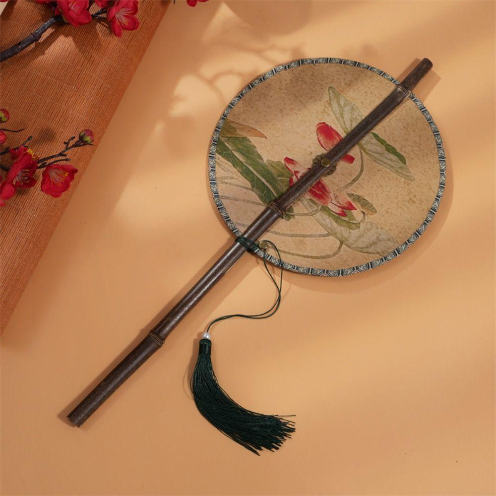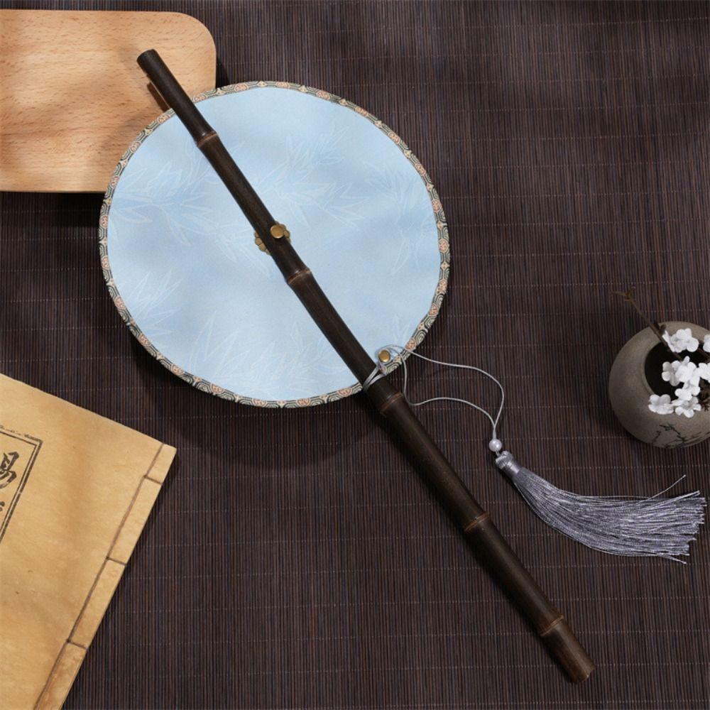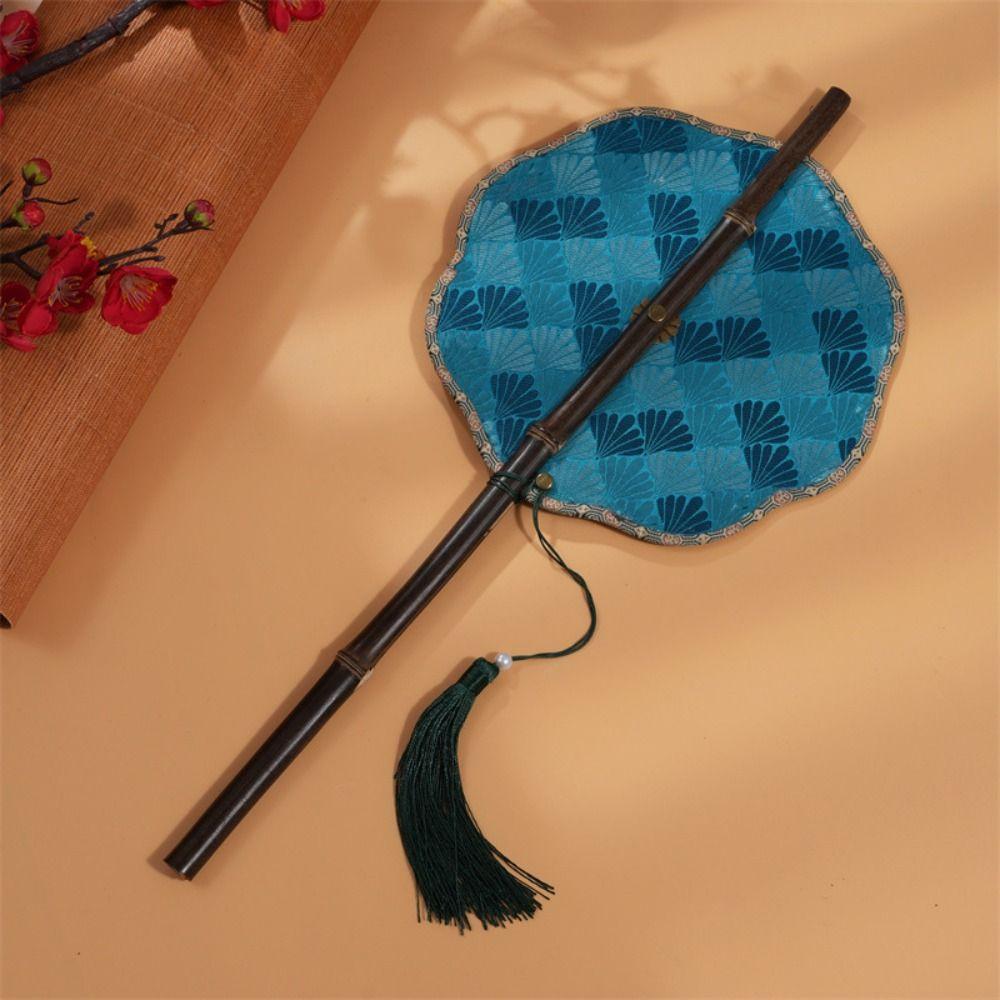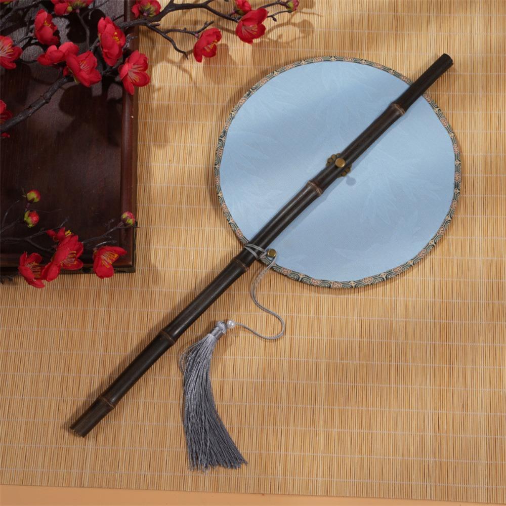 Rollable Long Handle Fan Rotatable Group Fan Portable Chinese Bamboo Waist Fan Gifts