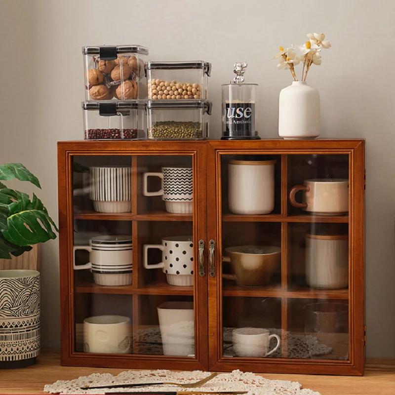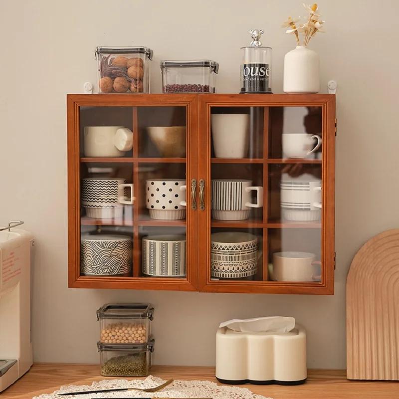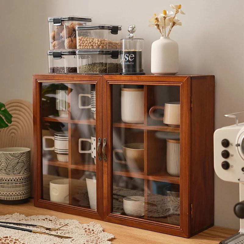 Винтажный настольный шкаф для хранения чашек из массива дерева Домашний ресторан коробка для хранения чайного сервиза пылезащитный держатель для кружек антикварная витрина