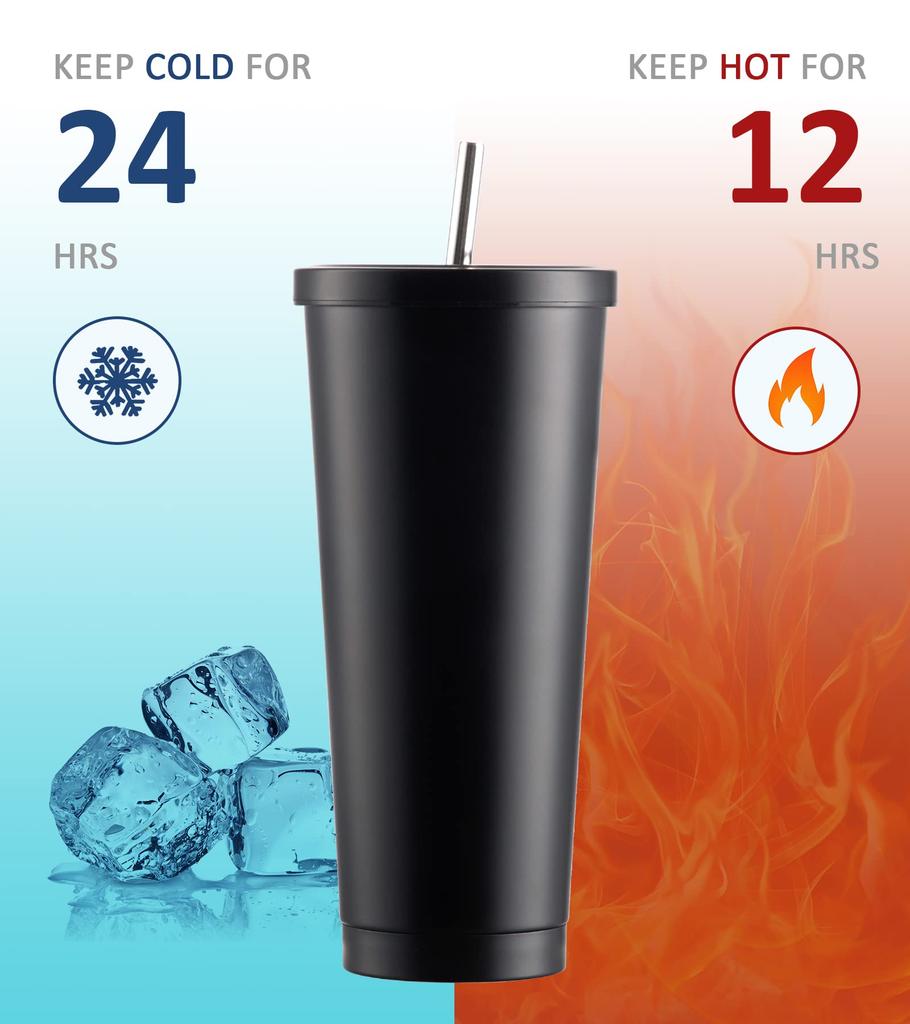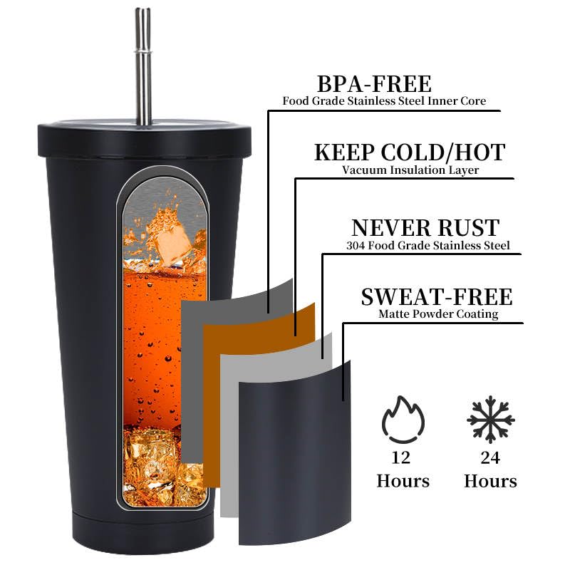 Кружка для кофе из нержавеющей стали с крышкой и соломинкой, многоразовые чашки для эспрессо, с двойными стенками для горячих/холодных напитков, для айс американо, подарки