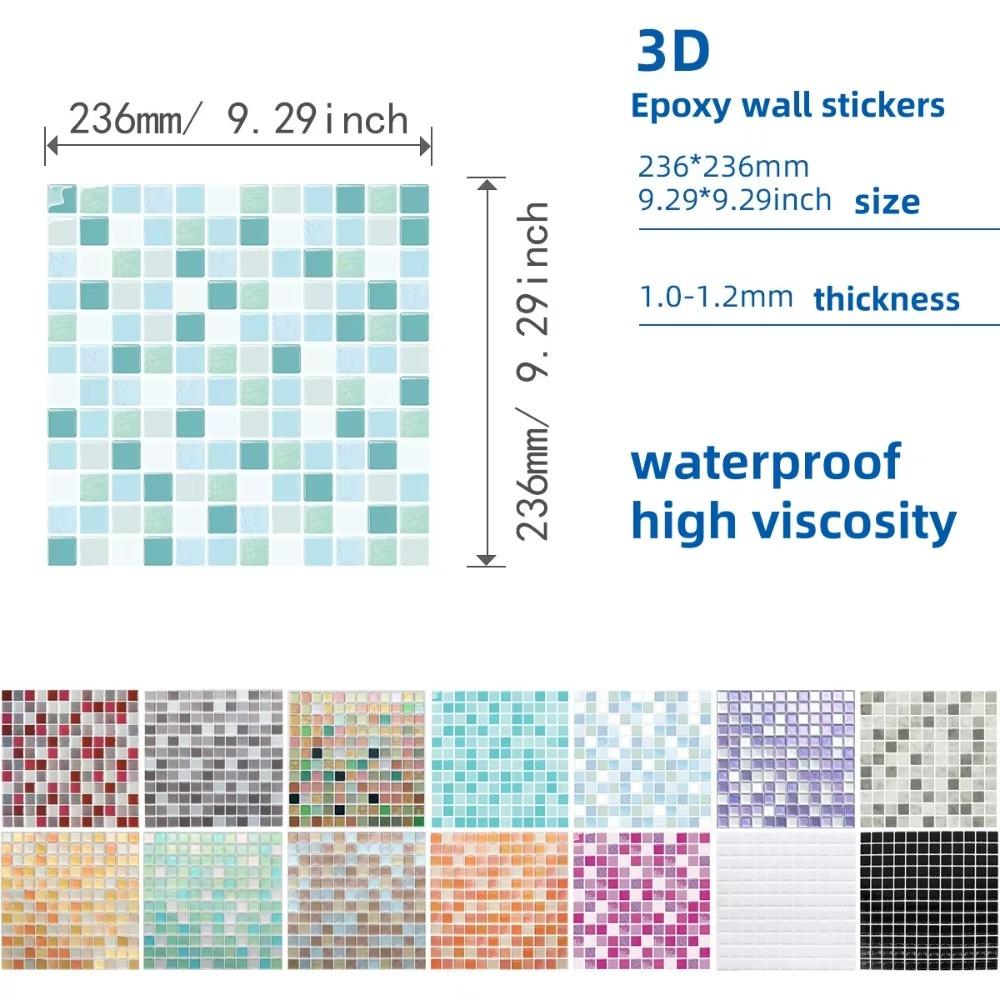 1pcs 3D Design Mosaic Tile Sticker DIY Self-adhesive Self-Adhesive Tile Sticker PVC Removable Oil-proof Tile Sticker