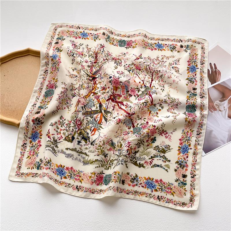 70см Новый Модный Хлопковый Квадратный Платок Женский Дизайн с Цветочным Принтом Банданы Женский Шарф Повязка на Голову Носовой Платок для Волос Роскошный Бренд