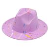 Ji Nan Ladies Tie-Dyed Rainbow Wool Top Hat, Flat-Brimmed Jazz Hat Felt Hat