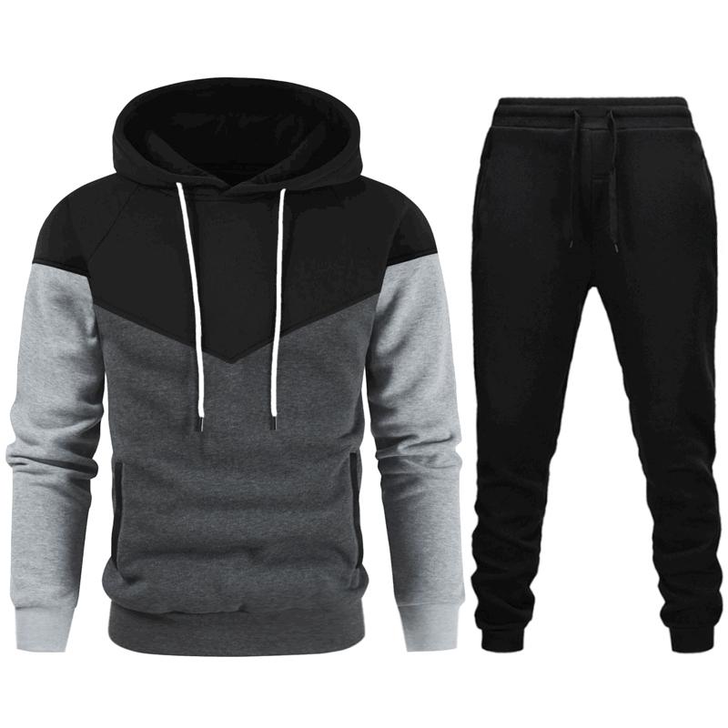 Мужской комплект с капюшоном в стиле пэчворк, теплый и роскошный комплект из двух предметов, высококачественный принтованный свитер, спортивная одежда