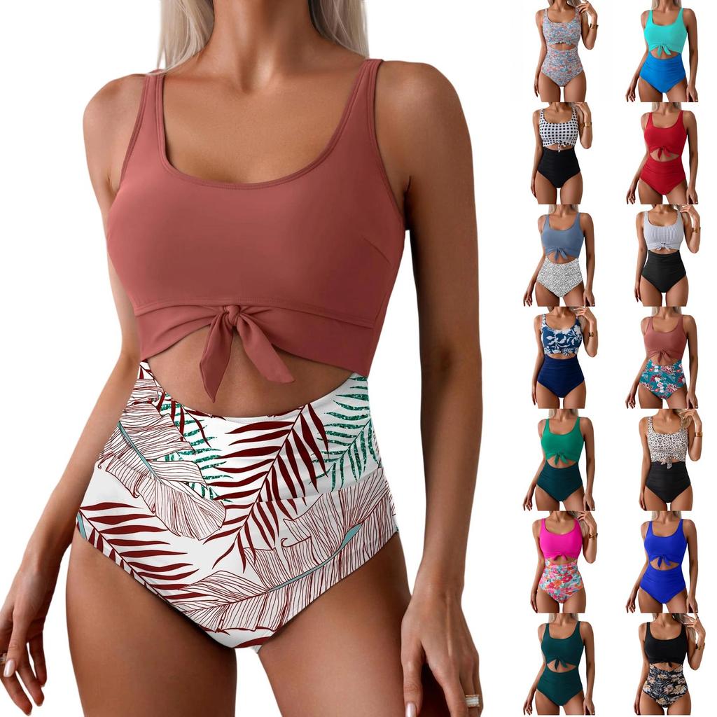 Женский слитный купальник облегающего кроя с вырезами и завязкой на талии