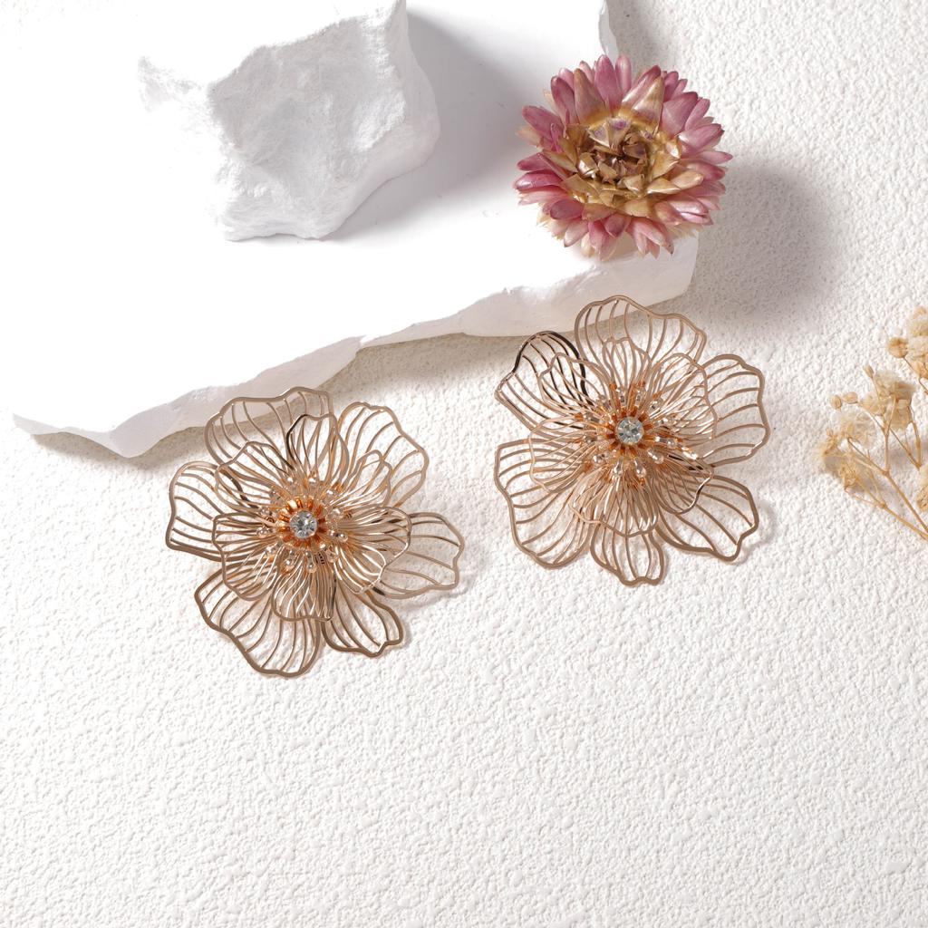 Богемная индивидуальность ретро тренд металлические серьги-пусеты с полыми цветами креативный уникальный дизайн с чувством высокого класса