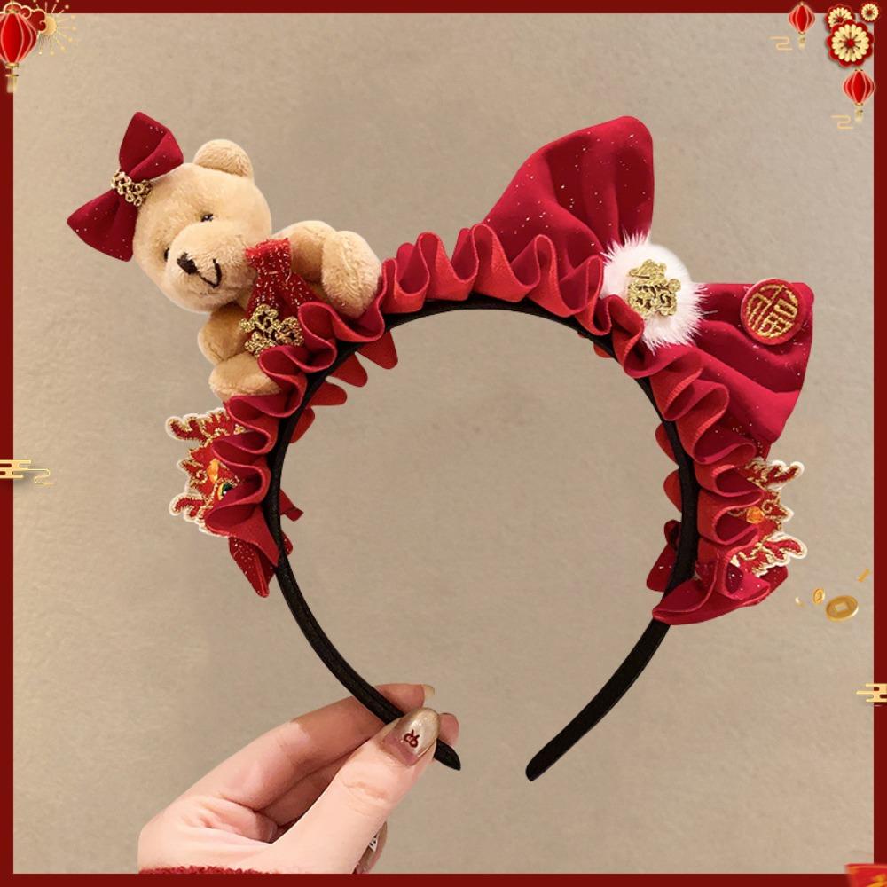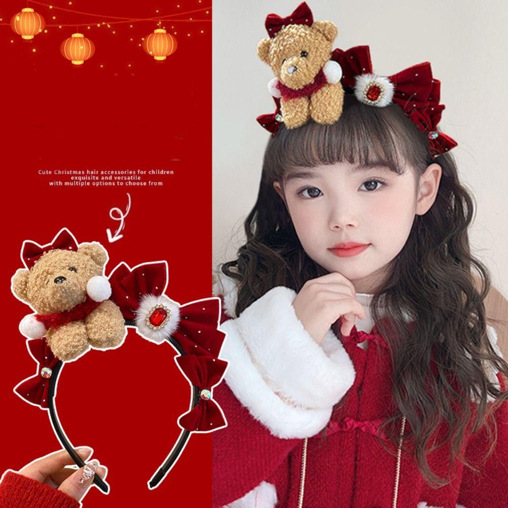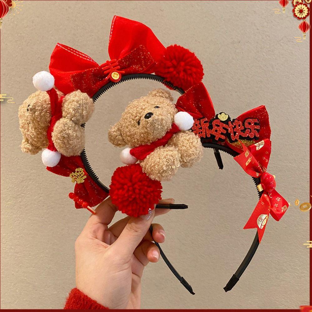 Pony Red Velvet Bow Hairband Cartoon Plush Hair Hoop Sweet New Year Headband Photo Prop