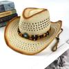 Western Cowboy Hat Women'S Embroidery Shade Straw Hat Ethnic Style Outdoor Jazz Hat