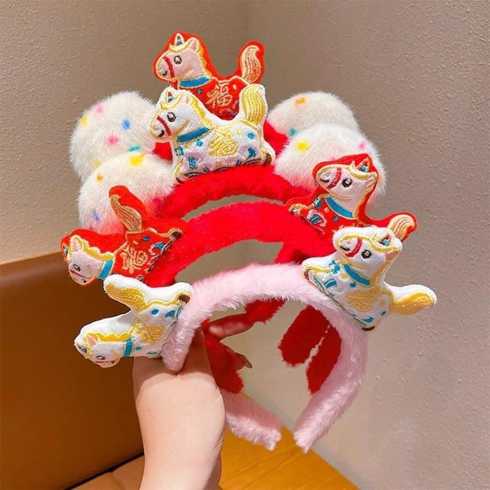 Pony Horse Hair Hoop Mascot New Year Headpiece Cute New Year Headband New Year Dress Up