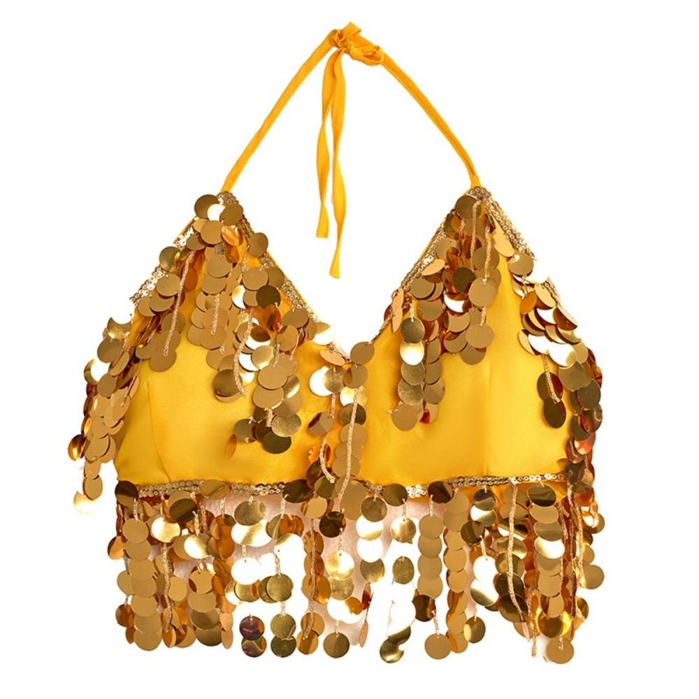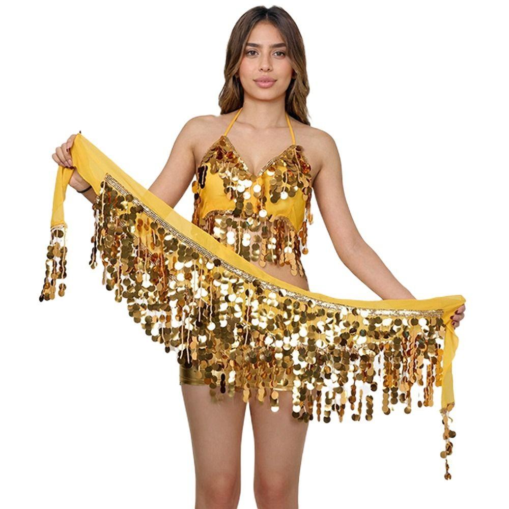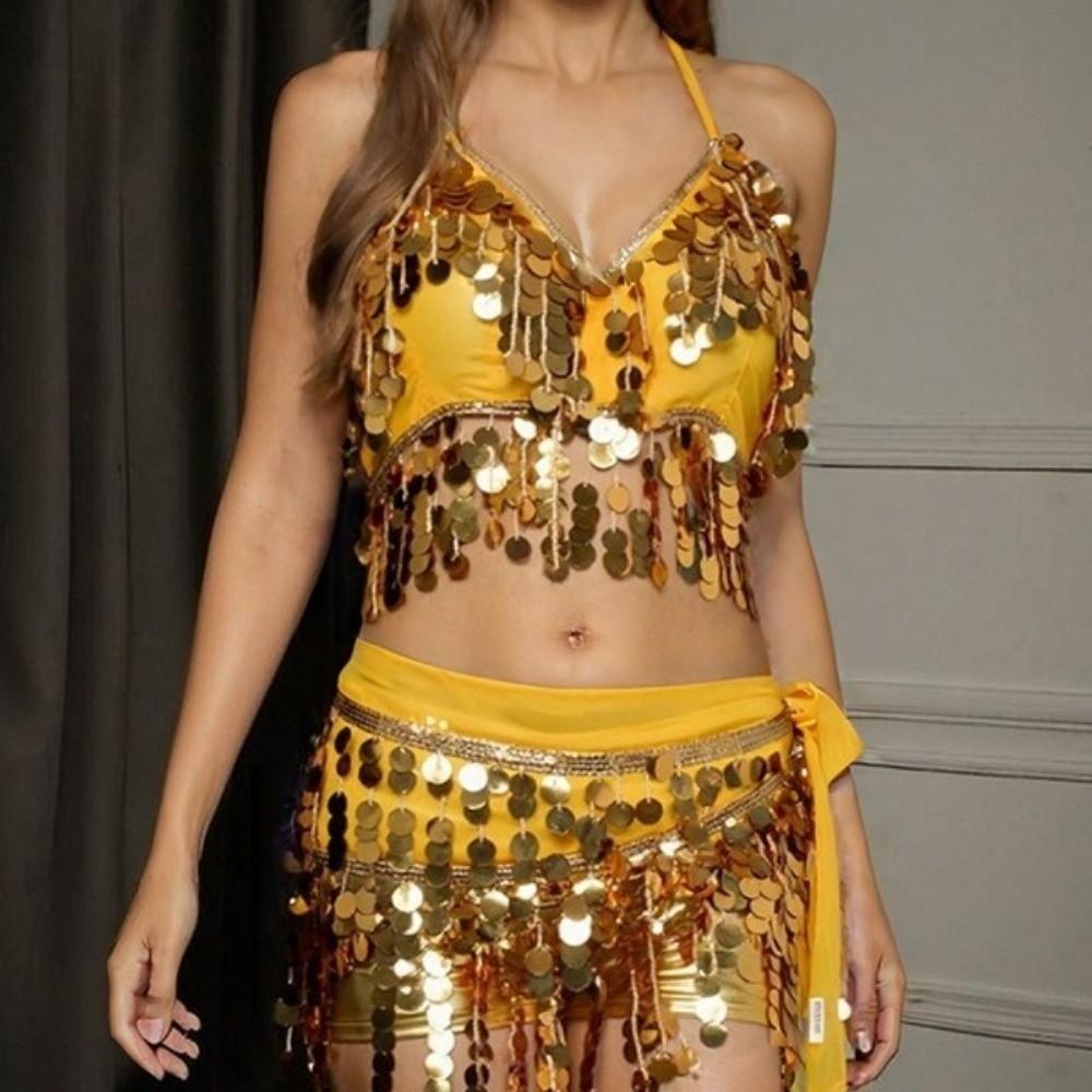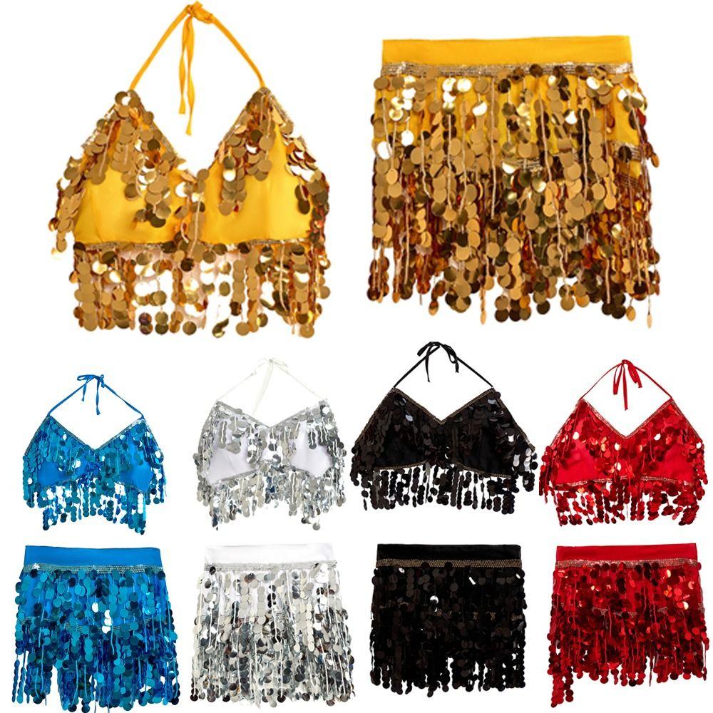 Sequins Dance Bra Belt High Waist Hip Scarf Fashion Belly Dance Skirt Performance Top