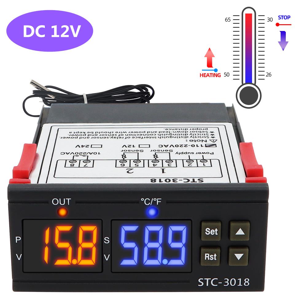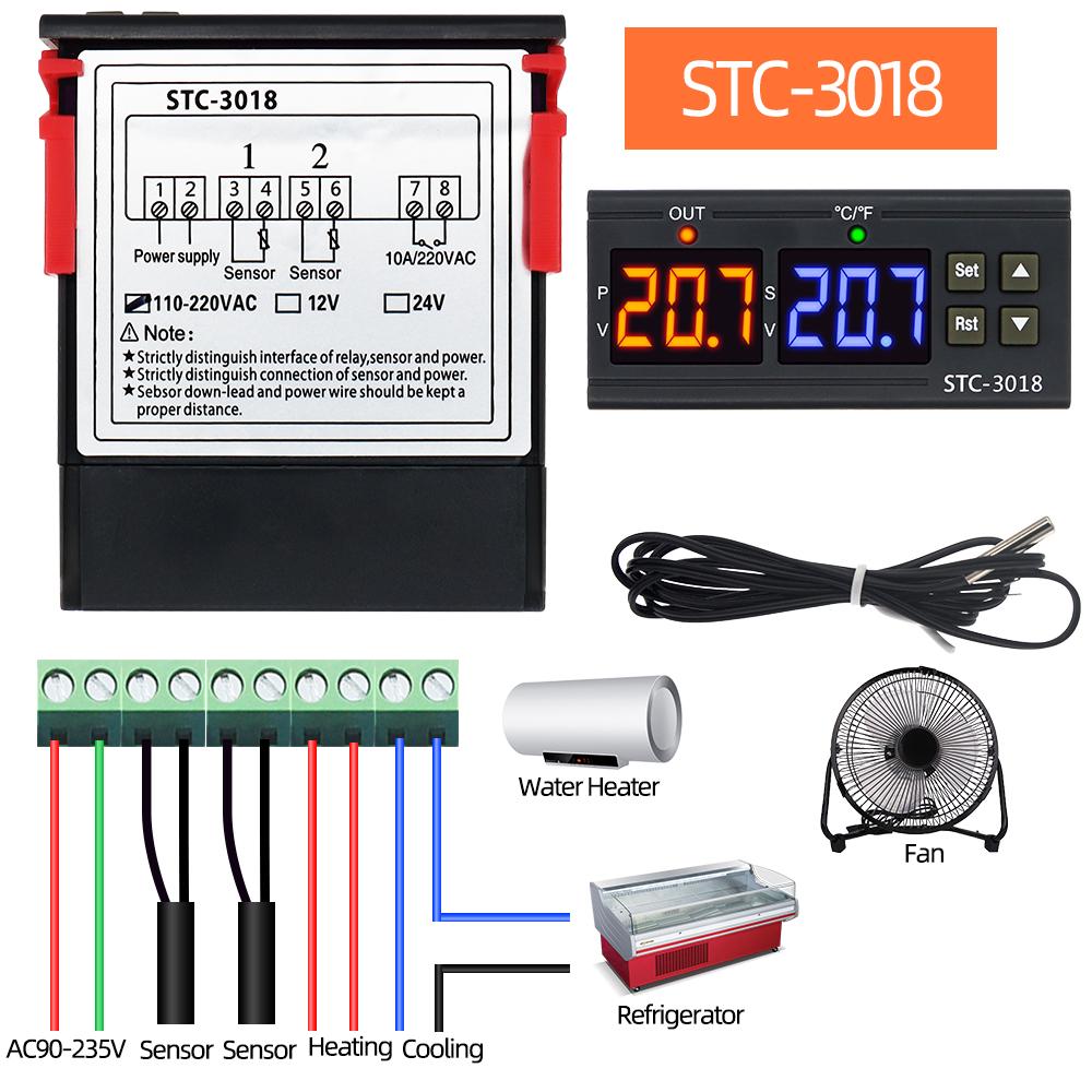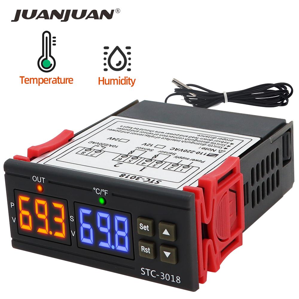 STC-3018 Двойной цифровой термостат Регулятор температуры Термометр Переключатель управления 10А 12В 24В 220В Гигрометр Инкубатор