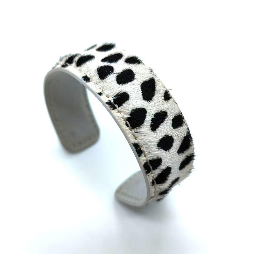 Прошитый браслет из натуральной кожи с конским волосом, креативный открытый браслет C-образной формы, браслет-манжета с леопардовым принтом, подарок