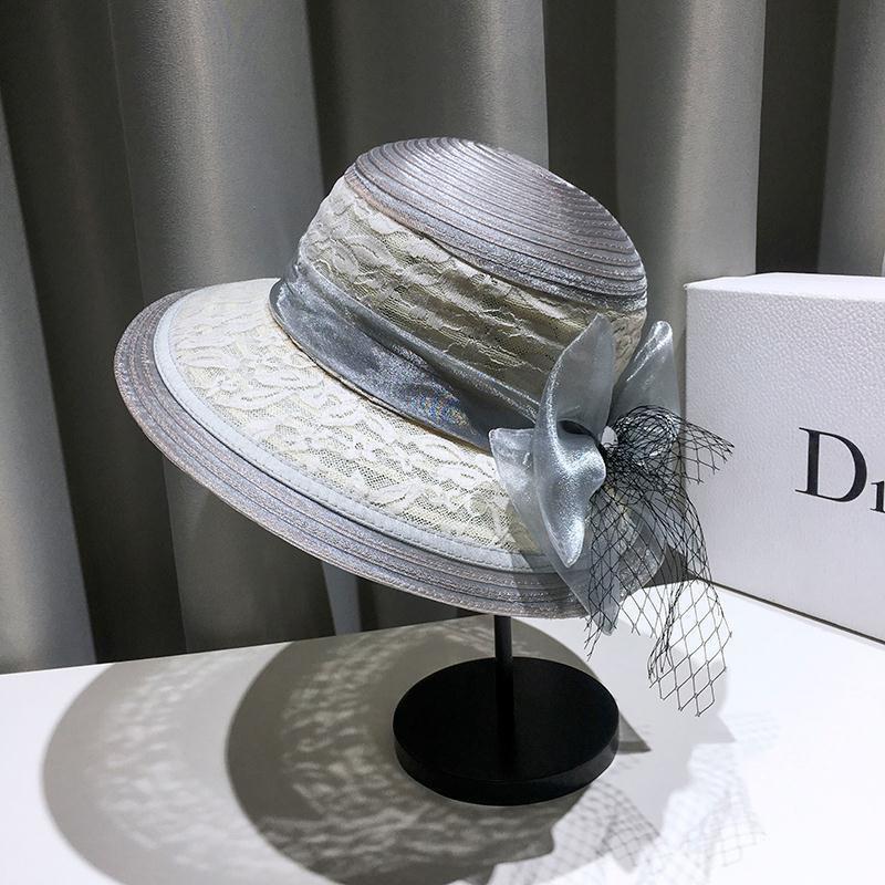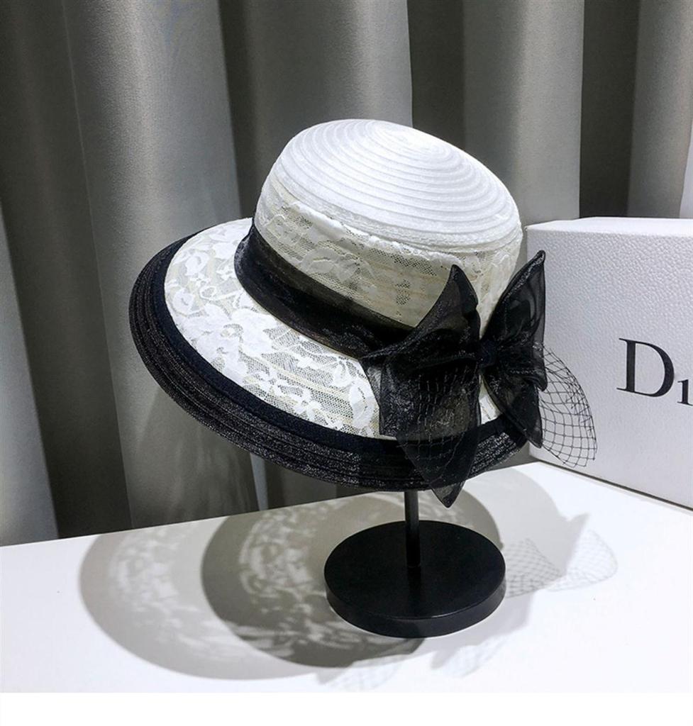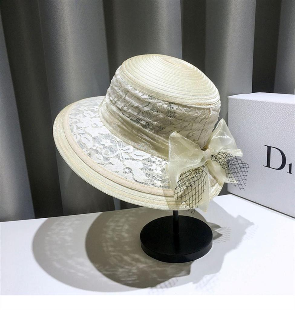 Летняя кружевная сетчатая шляпа-ведро женская в стиле Хепберн, сочетание цветов, ретро шляпа-цилиндр, элегантный бант, шляпа от солнца