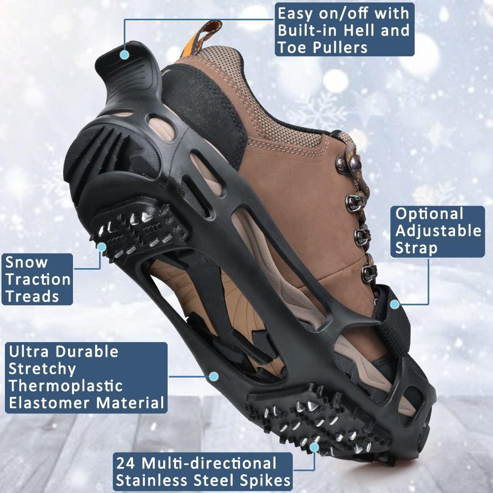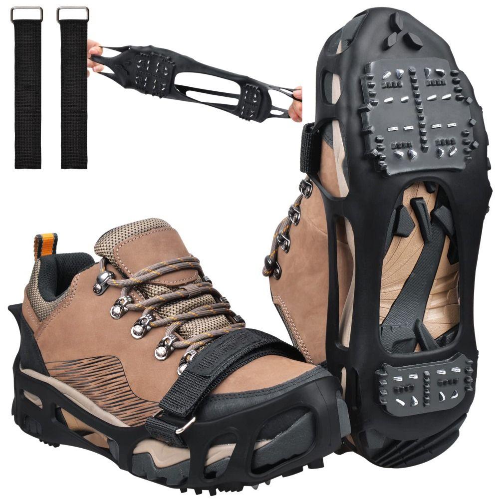 - ЛЕГКО НОСИТЬ И ПОРТАТИВНЫЙ: Шипы для сцепления достаточно растягиваются, чтобы покрыть большинство туфель и ботинок, достаточно легкие, чтобы их можно было легко носить для пеших прогулок, рыбалки или любой другой деятельности на открытом воздухе.