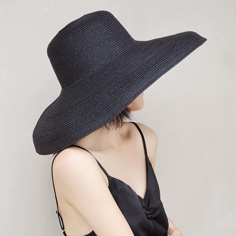 French Retro Women'S Summer Black Red Big Brim Sunshade Vacation Beach Sun Bell Hepburn Straw Hat — купить товар онлайн с бесплатной доставкой по всему миру!