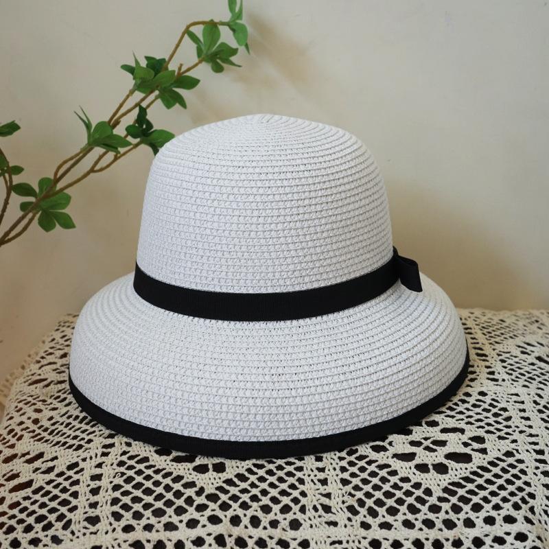 Французская винтажная элегантная белая шляпа Хепберн с черной каймой и бантом, шляпа-колокол рыбака, женская летняя пляжная соломенная шляпа для отпуска