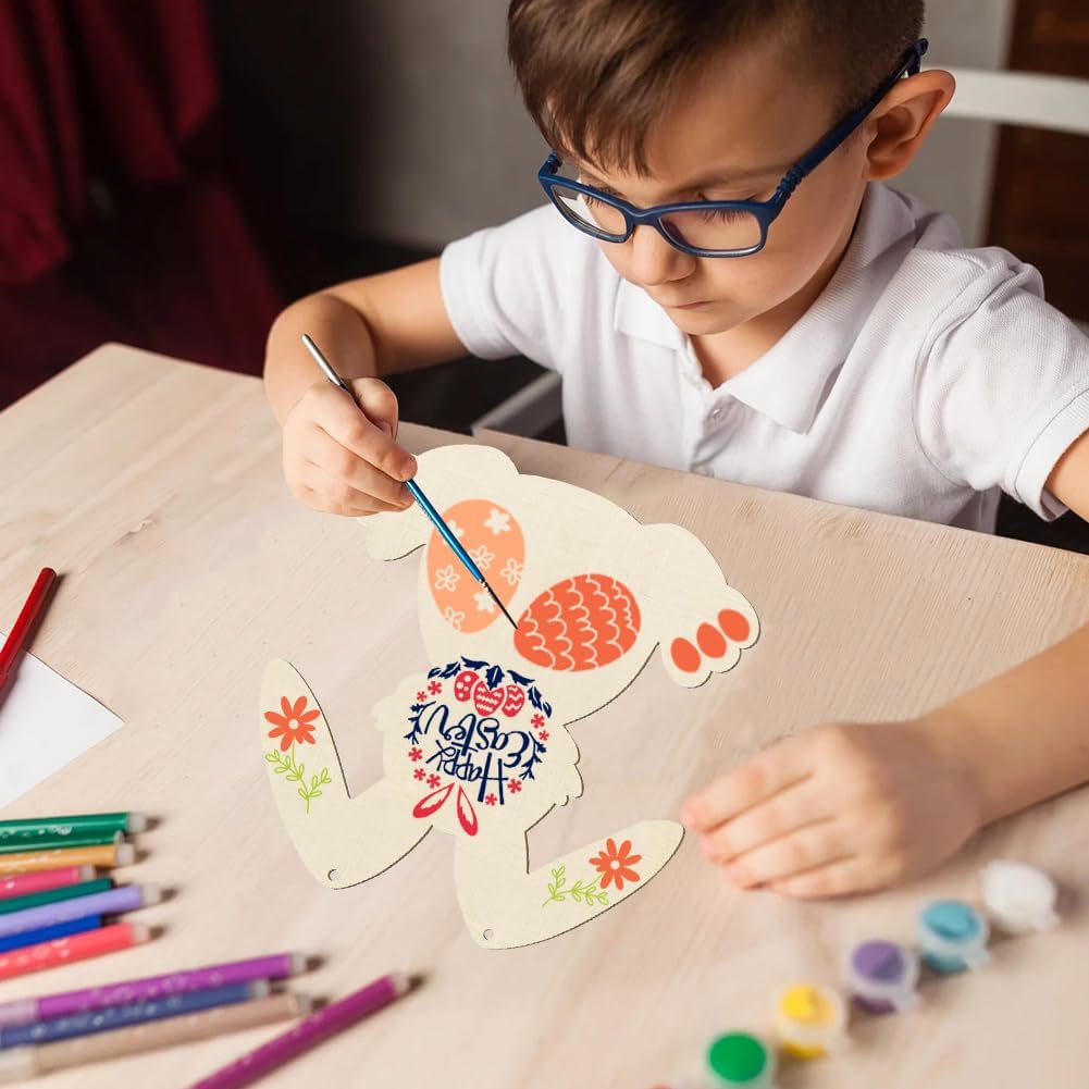 5 Pcs 11.6" Wooden Easter Ornaments to Paint Large Size Bunny Cutouts DIY Blank Unfinished Wood Discs Ornament Bunny Door Sign for Home Crafts