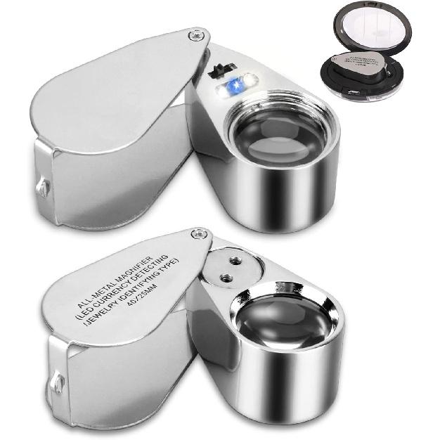 2 Pack 40X Illuminated Jewelers Loop, JLY Pocket Folding Full Metal Jewelers Loupe Magnifying Glass with Lights for LED Currency Detecting, Jewelry — купить товар онлайн с бесплатной доставкой по всему миру!