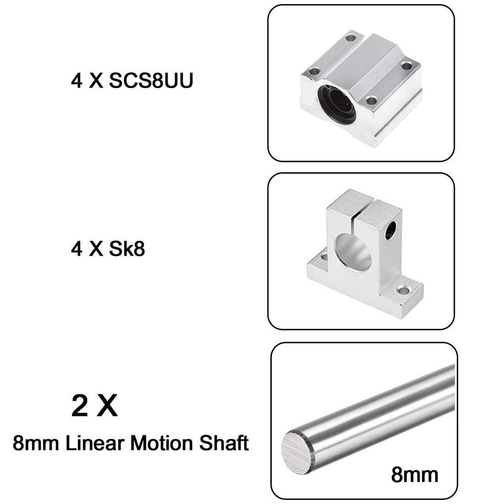 2 шт. 8 мм X 300 мм Направляющая вала линейного перемещения с 4 шт. шарикоподшипниками SCS8UU и 4 шт. алюминиевыми опорами рельсов SK8, комплект направляющих валов линейного перемещения для ЧПУ