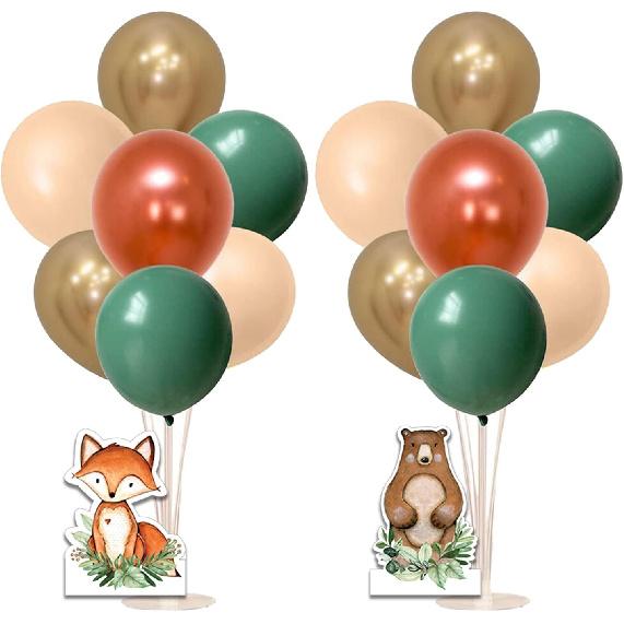 Woodland Balloon Stand Kit and Animals Centerpieces, 2 Set Table Stand Holder with 22 Balloons, Fox and Bear, Deer and Raccoon cutout, Wild one 1st
