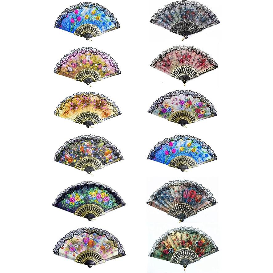 Spanish Folding Hand Fan,Handheld Fans Summer Vintage Dancing Party Hand Fans for Girls Women (12 PCS, Random Pattern)