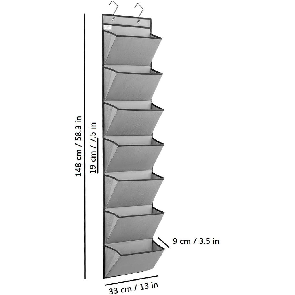 Wall Mounted File Holder Over Door Hanging Mail Organizer Document Storage Bag for Papers Magazines and Books (7 POCKETS-GREY)