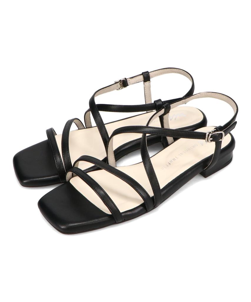 Narrow Strap Flat Sandals/Women's 52209 BLACK-M