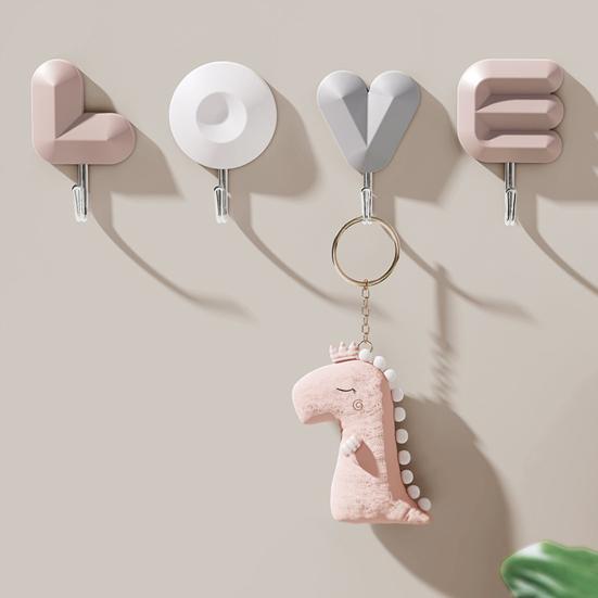Стильный дизайн "ЛЮБОВЬ": Этот набор, включающий четыре крючка, расположенных в виде слова "LOVE", сочетает в себе функциональность и эстетическую привлекательность.. Его современный и простой стиль украсит интерьер любой комнаты, служа одновременно практичным органайзером и привлекательным настенным декором.