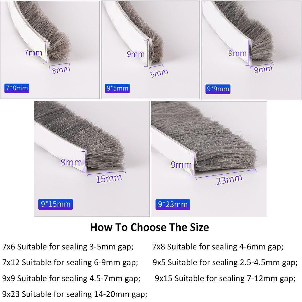 В коплект входит:10 метров/рулон x Самоклеящийся щеточный уплотнитель