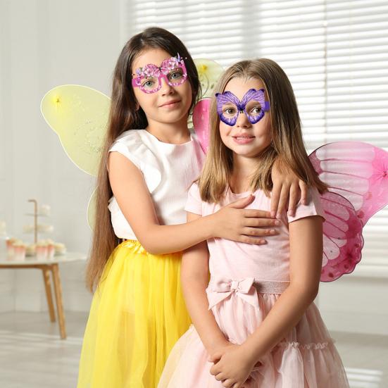 Эти очки-бабочки легкие и удобные, они предназначены для того, чтобы их могли носить как взрослые, так и дети без каких-либо усилий в течение длительного времени.. Идеально подходящие для вечеринок, маскарадов и детских костюмов, они добавляют мечтательный, сказочный штрих, который усиливает любую фотографию волшебной атмосферой..
