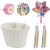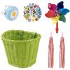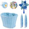 Детская корзина для велосипеда, Передняя корзина для велосипеда, Аксессуары для велосипеда для девочек и мальчиков, Плетеная корзина для велосипеда с наклейками, Велосипедный звонок, Ветряк и 1 пара цветных