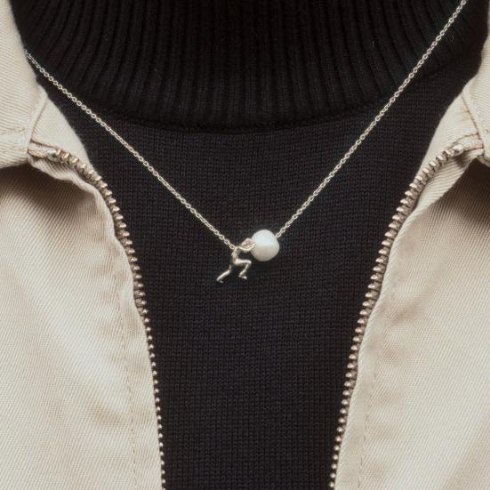 Вневременной символизм: Это ожерелье вдохновлено мифом, воплощая стойкость и упорство.. Дизайн отражает вечную борьбу толкания валуна в гору, напоминая носящим, что каждое усилие имеет значение, даже перед лицом повторения и вызова.. Он служит значимым талисманом для тех, кто ценит силу, обретенную в невзгодах.