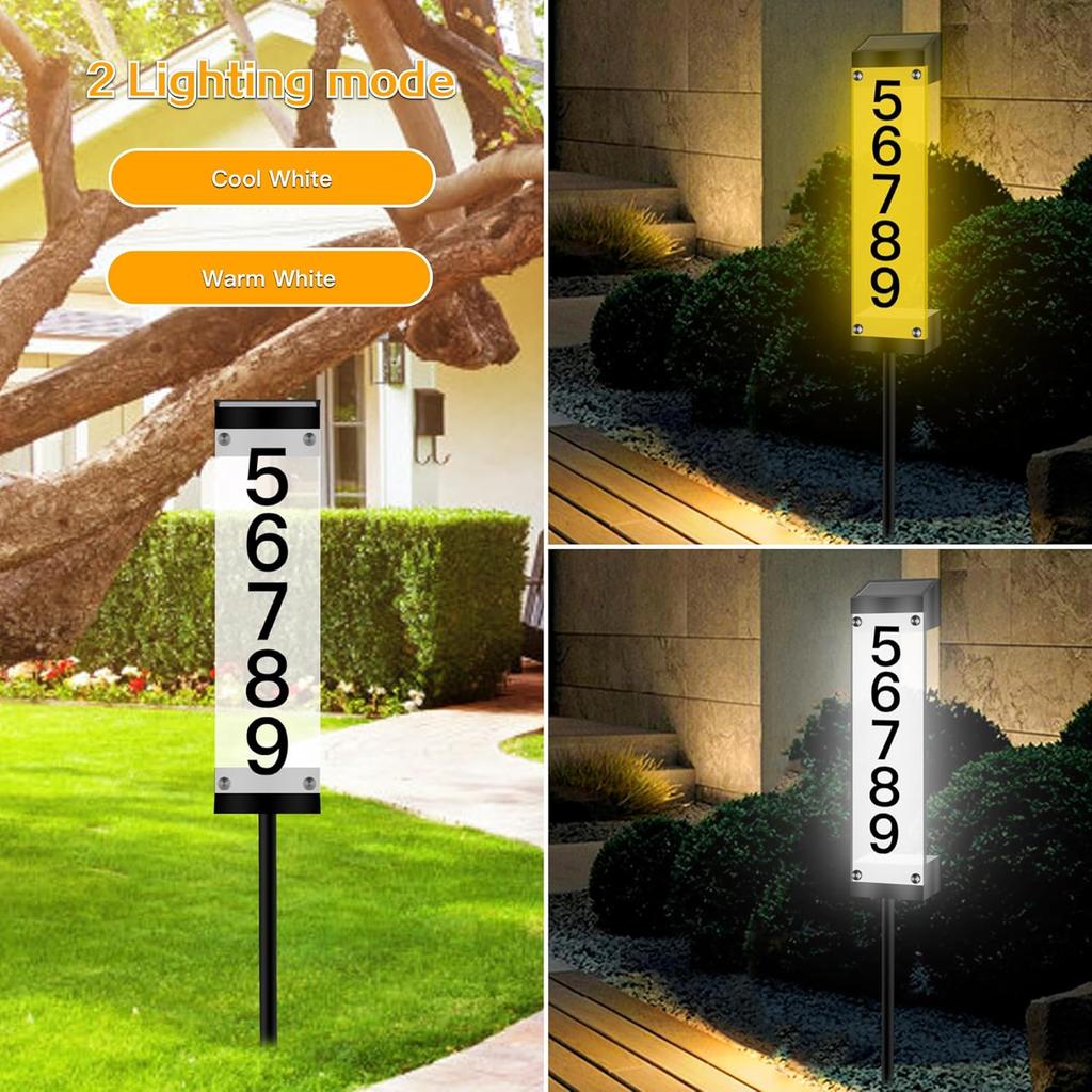 Солнечные номера домов для улицы, Светящаяся солнечная адресная табличка, Адресные номера для домов, Водонепроницаемая светодиодная адресная табличка на солнечной батарее со стойками