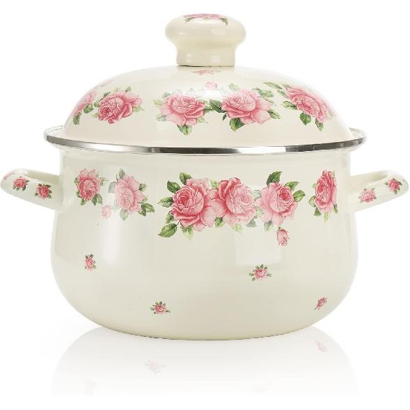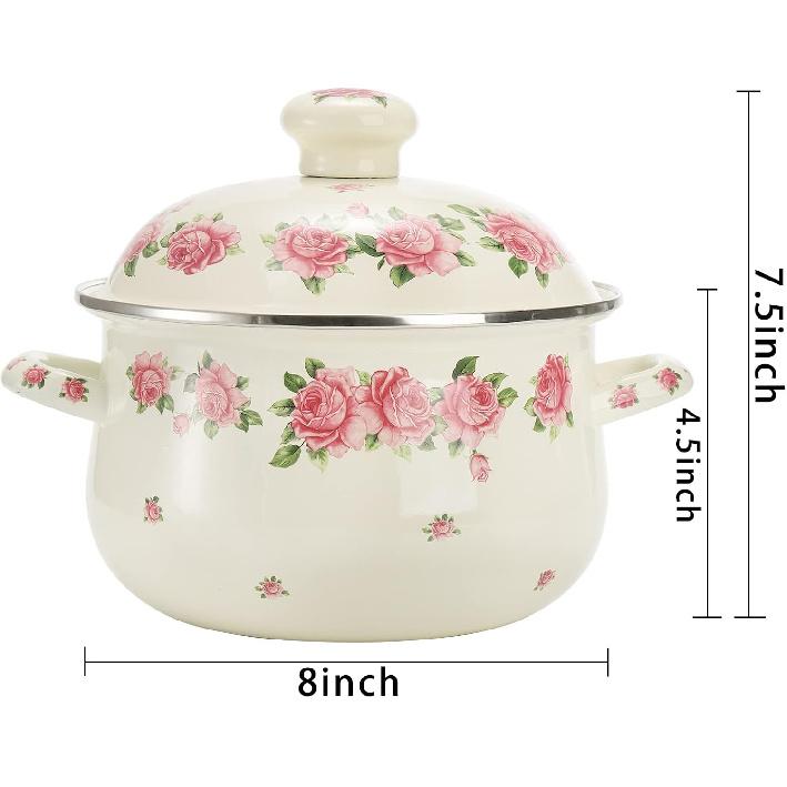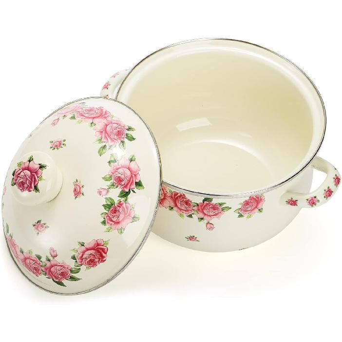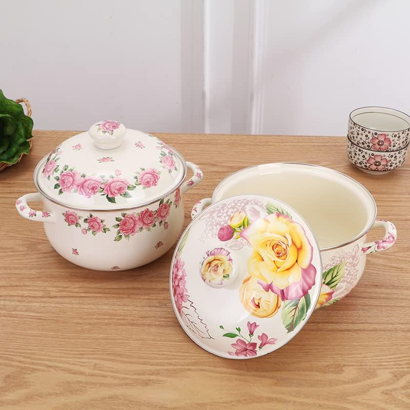 SOUJOY Эмалированная кастрюля с крышкой, 2,8 кварты, ретро кастрюля для готовки, винтажная цветочная кастрюля для тушения фасоли, кастрюля для кипячения с ручкой, кухонная кастрюля для супа, безопасна для индукционной плиты