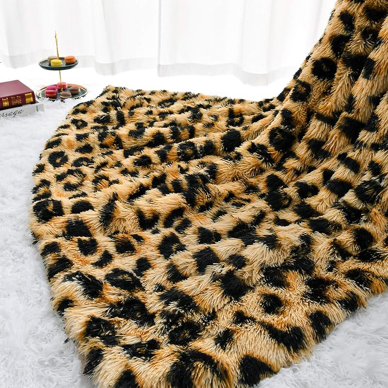 HOMORE Пушистое леопардовое одеяло, Плюшевые пледы с принтом гепарда, Мягкий искусственный мех, Покрывало для кровати, Декоративное для дивана, кресла, дивана, Стирка и легкий вес,