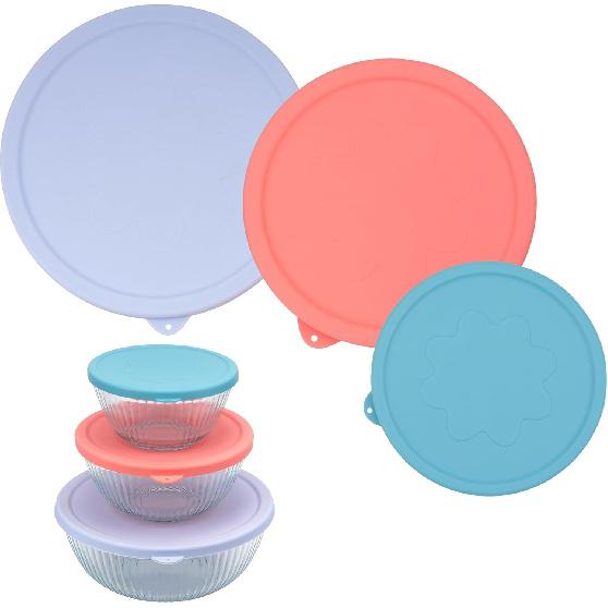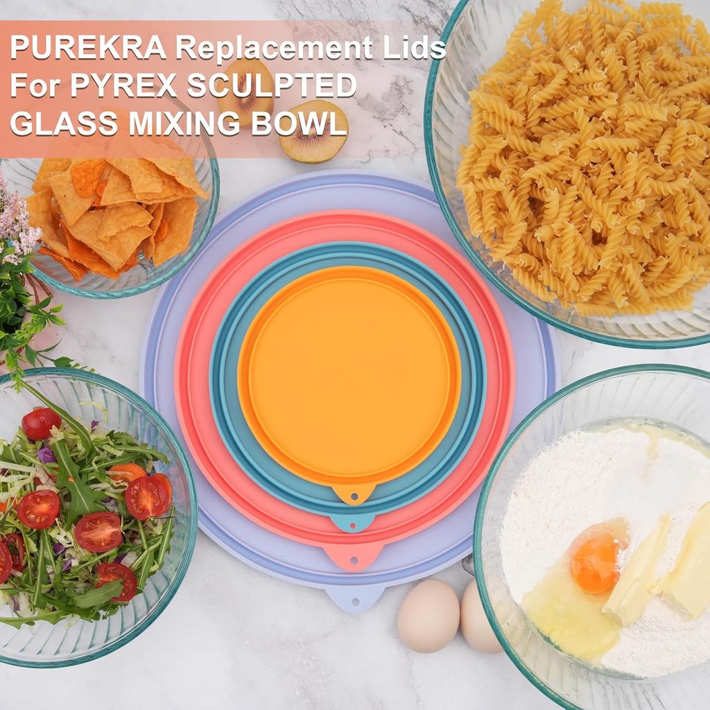 3 Pack Silicone Replacement Lids for Pyrex 7402-S 1.3 Qt, 7403-S 2.3 Qt, 7404-S 4.5 Qt Sculpted Tinted Glass Mixing Bowls (BOWL NOT INCLUDED)