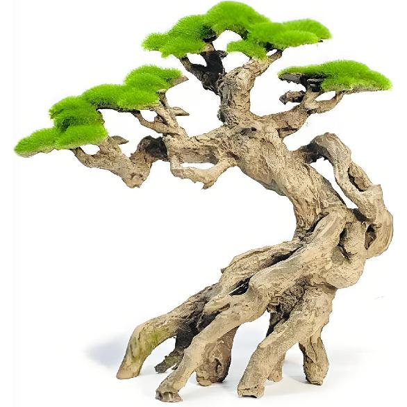 Украшение для аквариума - Скалистый бонсай с искусственным мхом - Декор для аквариума Акваскейпинг - Изготовлено из песчаника - Декор для аквариума с золотыми рыбками и петушками