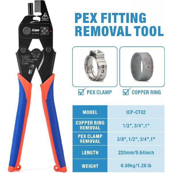 iCrimp ICP-CT02 PEX Crimp Fitting Removal Tool for Removing 1/2-in, 3/4-in, 1-in PEX Copper Crimp Rings & Stainless Steel Cinch Clamps