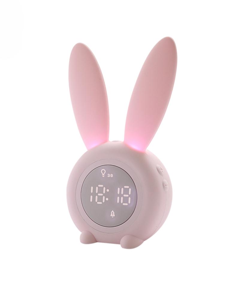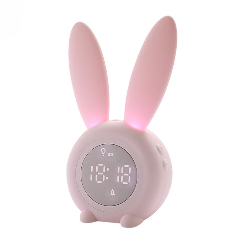 Mini Cartoon LED Digital Alarm Clock Electronic LED Display Sound Control Cute Rabbit Night Lamp Desk Rechargeable Clock
