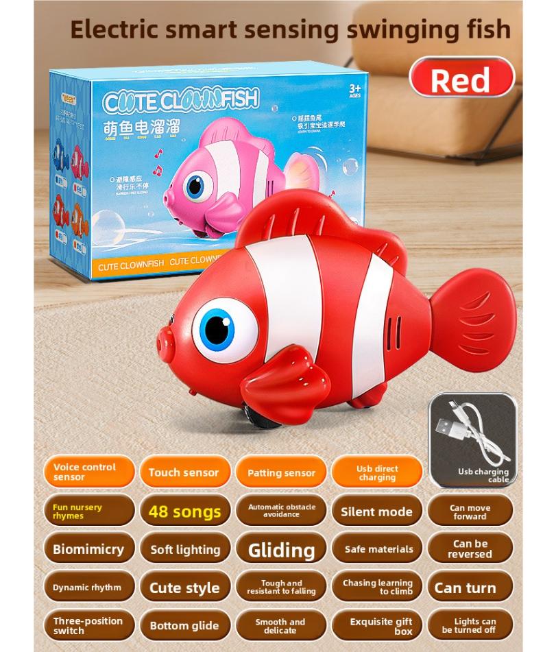 Electric Simulation Fish Automatic Sensing Dodge Clownfish Swinging Moving Educational Animal Learning to Climb and Chase Toy