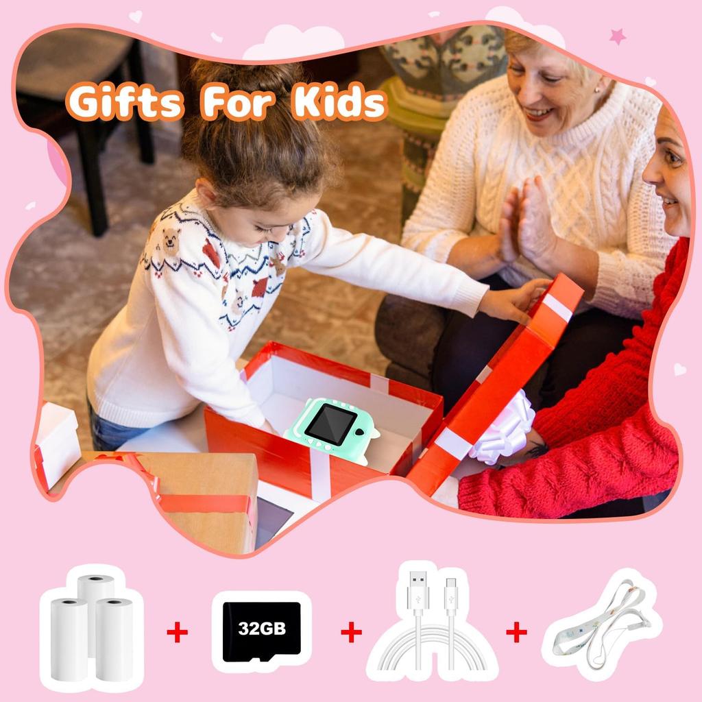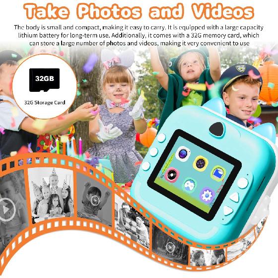📸【Portable and Durable】Our camera kit includes 3 rolls of printing paper, 32GB memory card, lanyard, USB Type-C cable, 1 user manual. We thoughtfully provide a sturdy lanyard to allow kids to keep their hands free and provide better protection for this kids instant print camera to prevent it from being lost. Great outdoor toy for kids 6+. Let your child explore the world through the lens of their own camera.